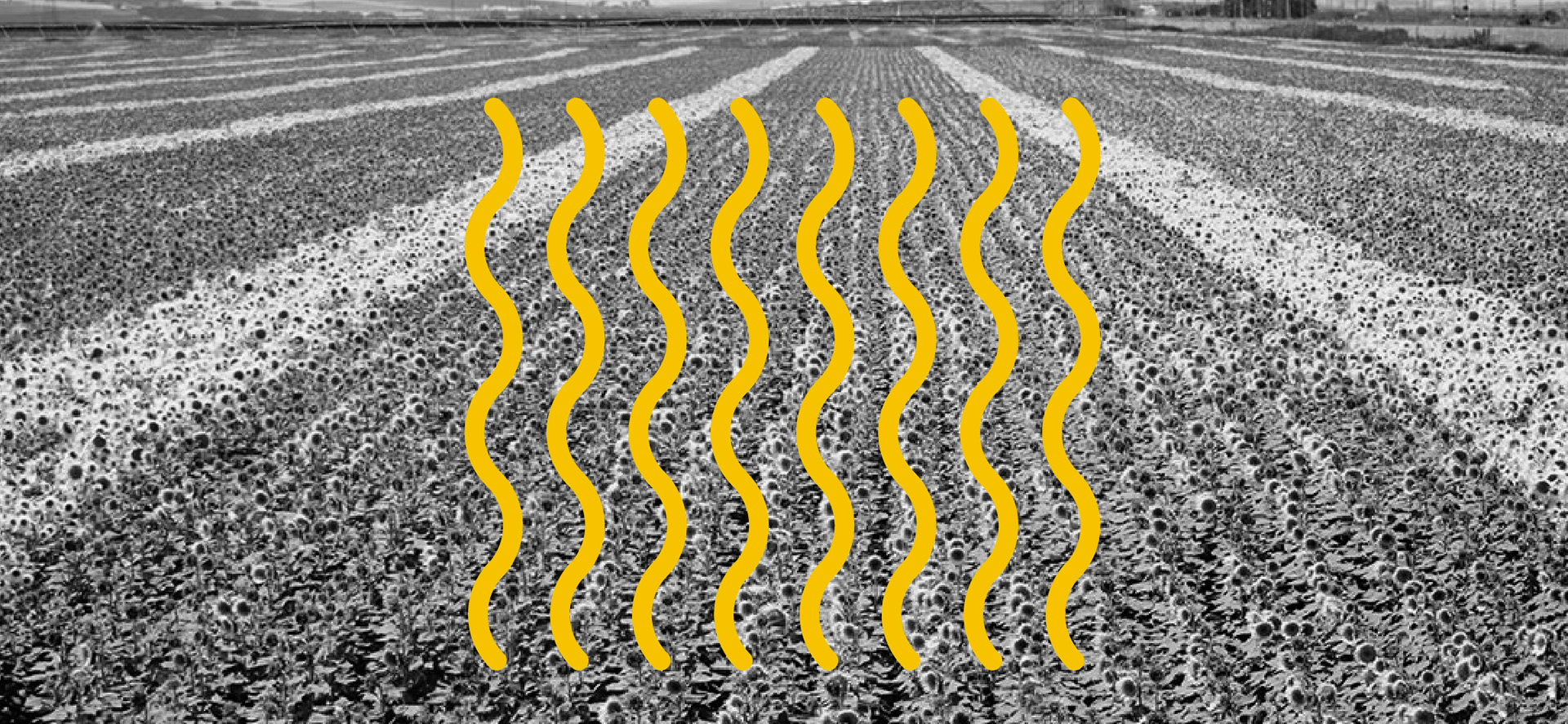 Pensando en las plantaciones de girasoles, tome cómo inspiración los surcos para plantar los girasoles. Pensando en el concepto de crecer y desarrollo. Este elemento gráfico se representa con los elementos obtenidos de la letra g